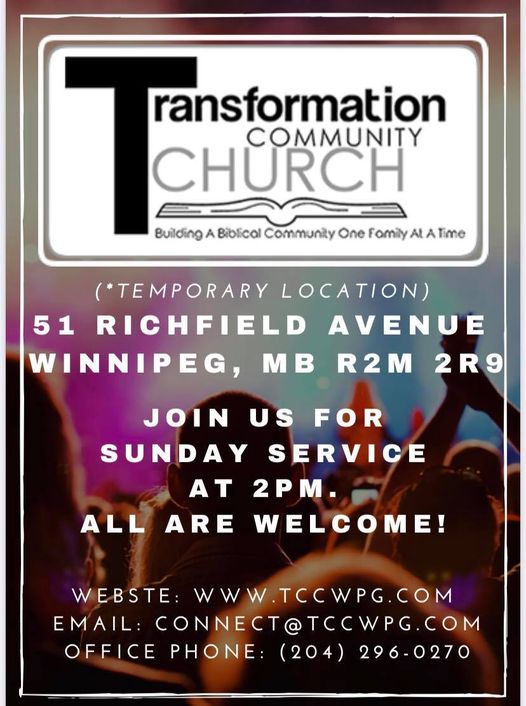 If you haven’t joined us for church yet we invite you to do so this Sunday at our Temporary Worship Location 51 Richfield Ave, Winnipeg, MB, Canada R2M 2R9. ,